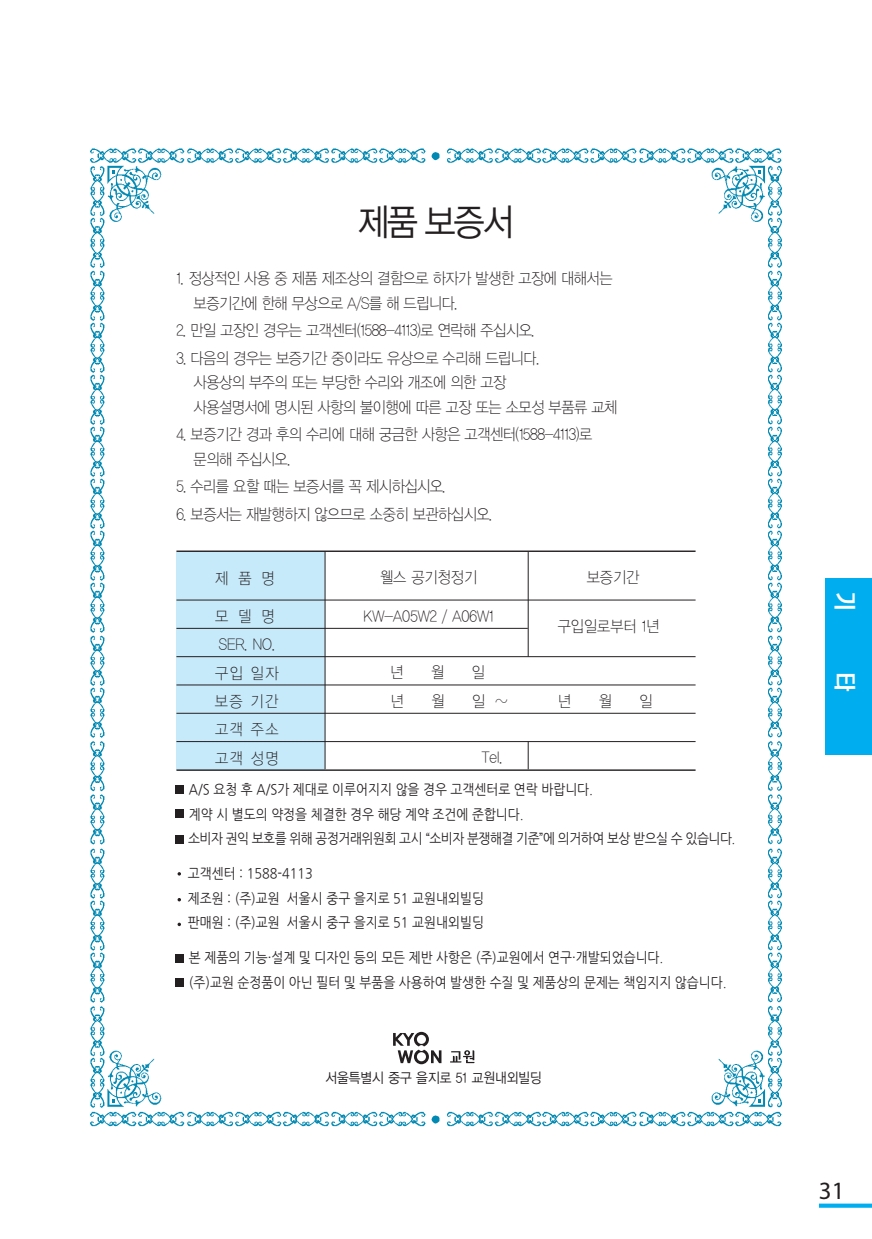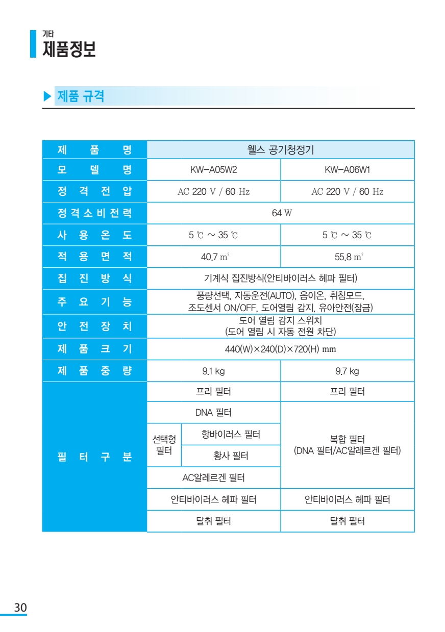 웰스 공기청정기 양방향 (KW-A06W1)